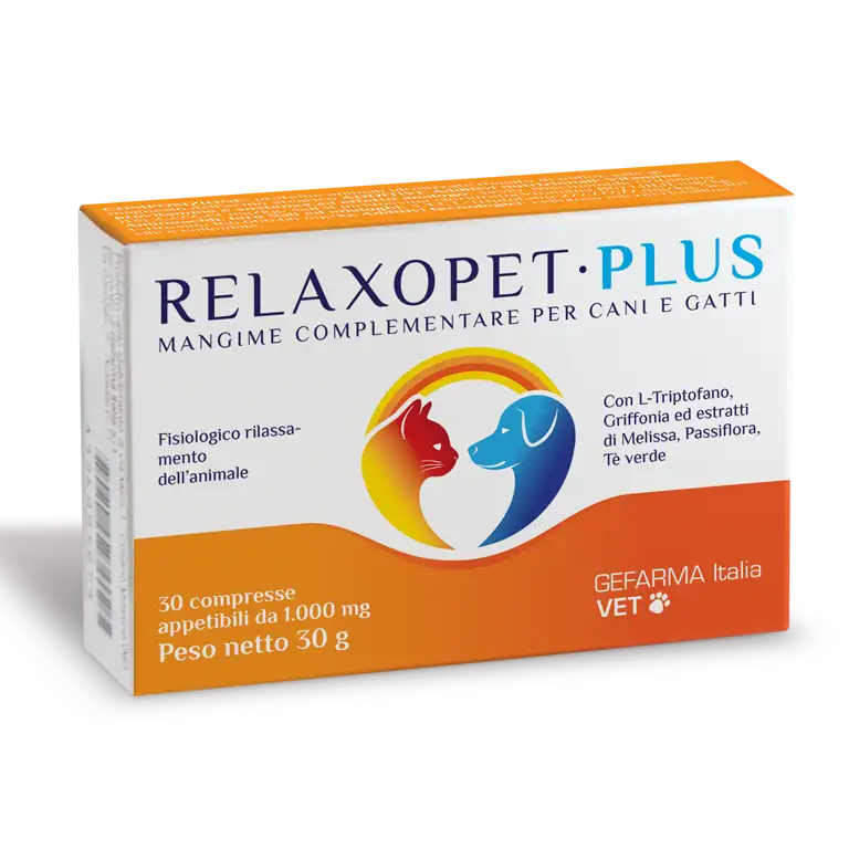 Relaxopet plus compresse divisibili da 1000mg è un mangime complementare indicato per l’in...